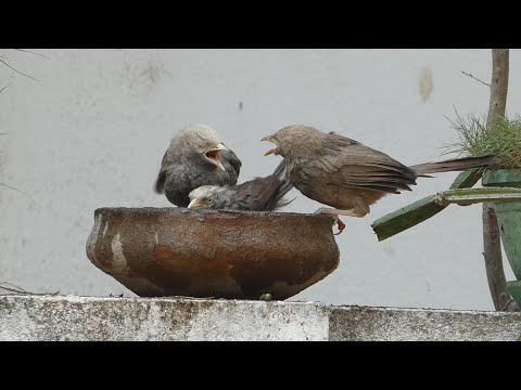 தவிட்டுக் குருவிகளின் ஆனந்தக் குளியல் | Yellow billed babbler's Bath